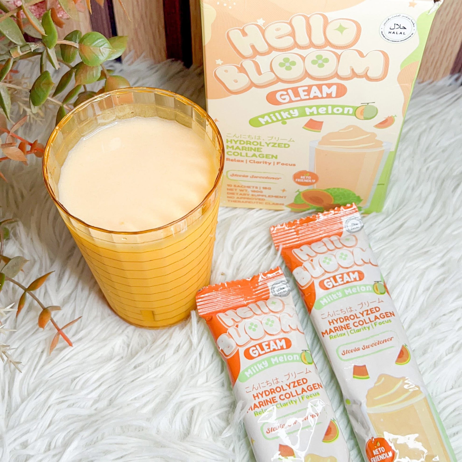 Revitalize your glow with every sip of Hello Bloom Gleam Milky Melon🌿